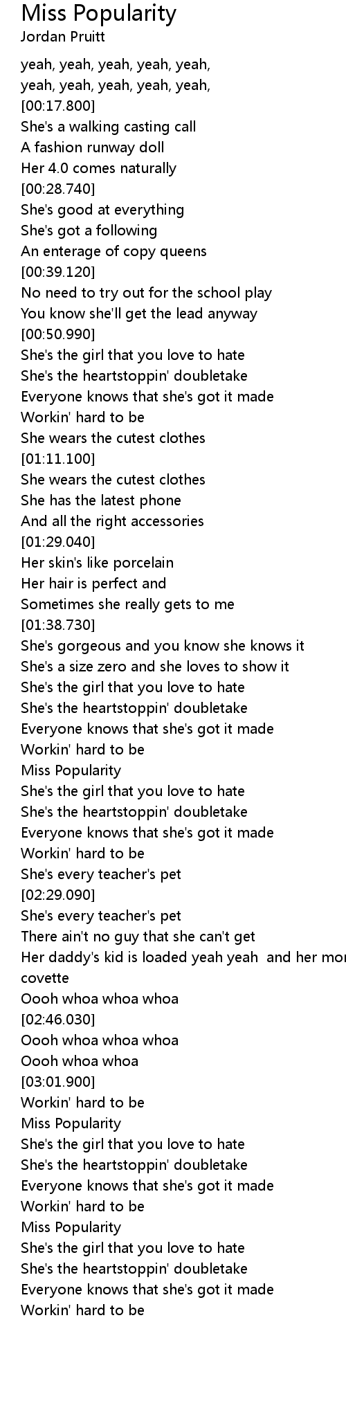 Her daddy's kid is loaded yeah yeah and her mommy drives a pink covette |