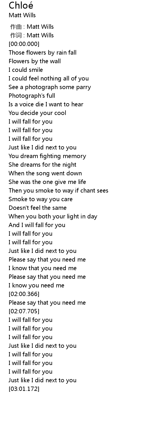 | [00:00.00] | zuò qǔ : Matt Wills |