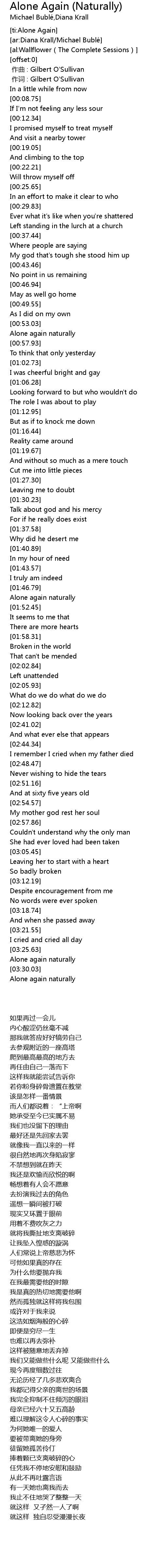 | [00:54.14] | Alone again naturally |