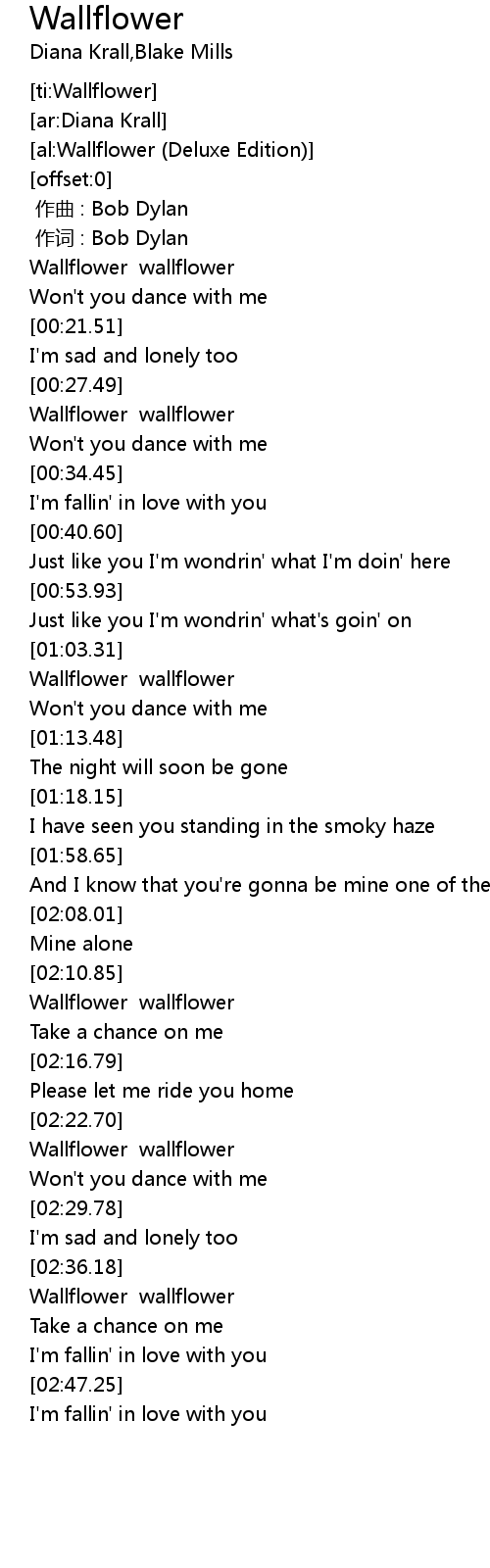 | [02:11.41] | Wallflower wallflower |