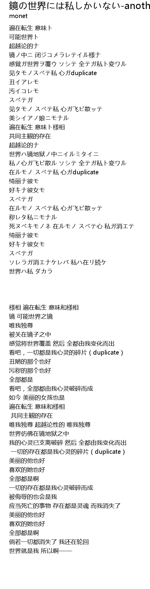 | [01:51.930] | 在ルモノ スベテ私 心ガduplicate |