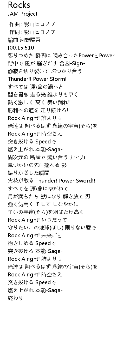 | [02:11.390] | Rock Alright! 時空さえ |