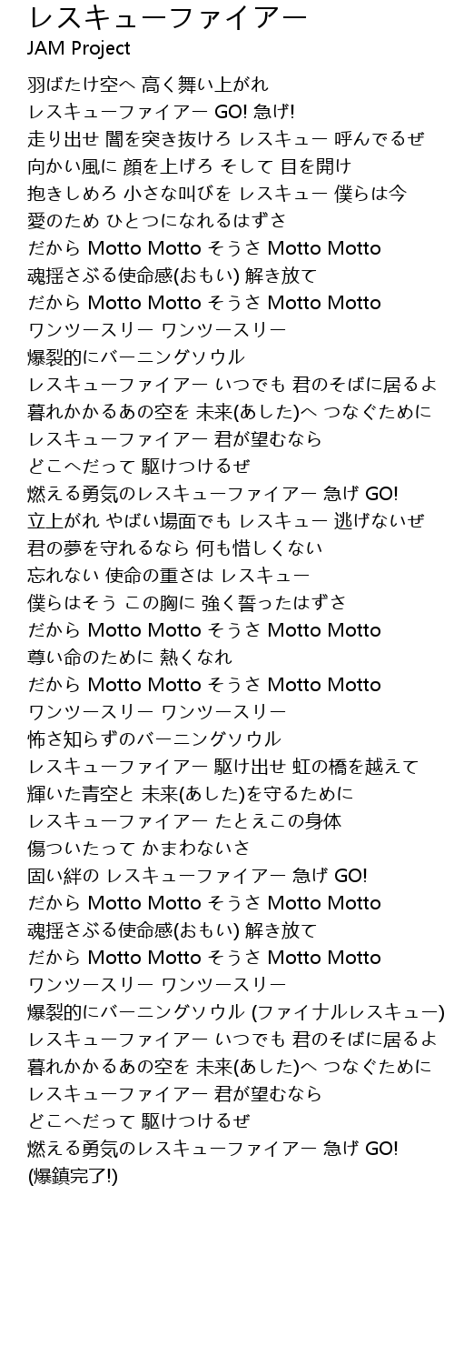 | 走り出せ 闇を突き抜けろ レスキュー 呼んでるぜ | |
