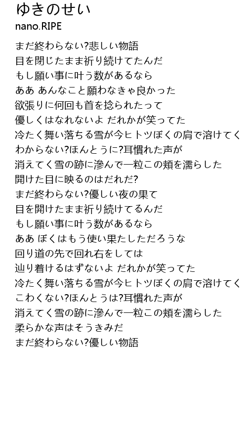 | 冷たく舞い落ちる雪が今ヒトツぼくの肩で溶けてく | |