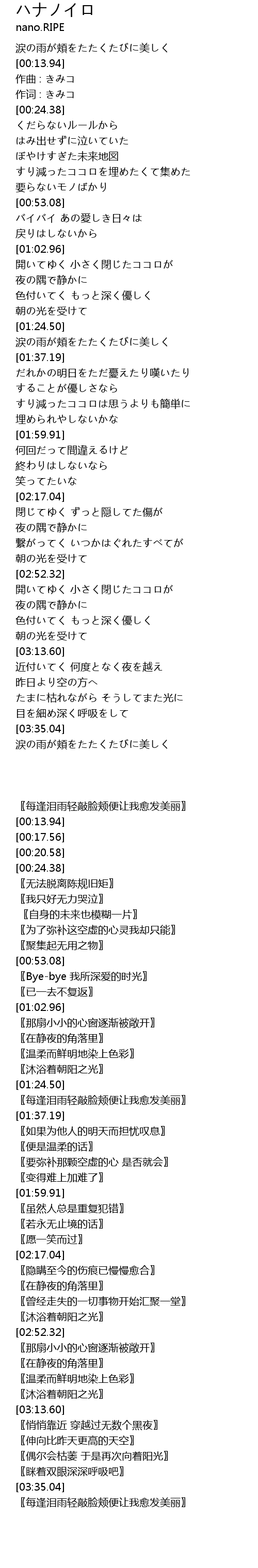 作词 : きみコ |