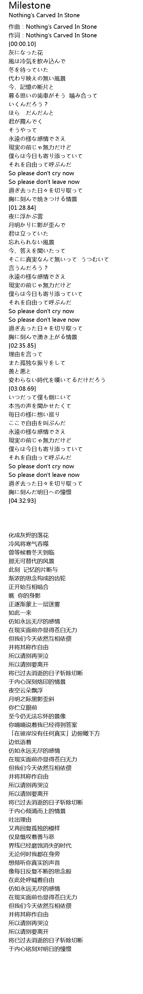 | [00:00.00] | 作曲:Nothing's Carved In Stone |