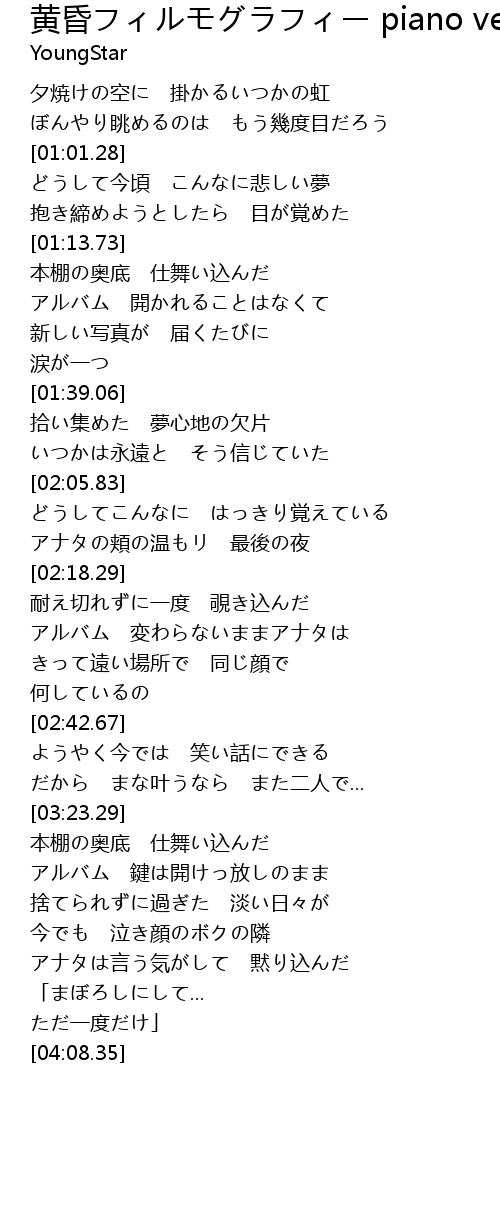 | Song | 黄昏フィルモグラフィー piano ver. |