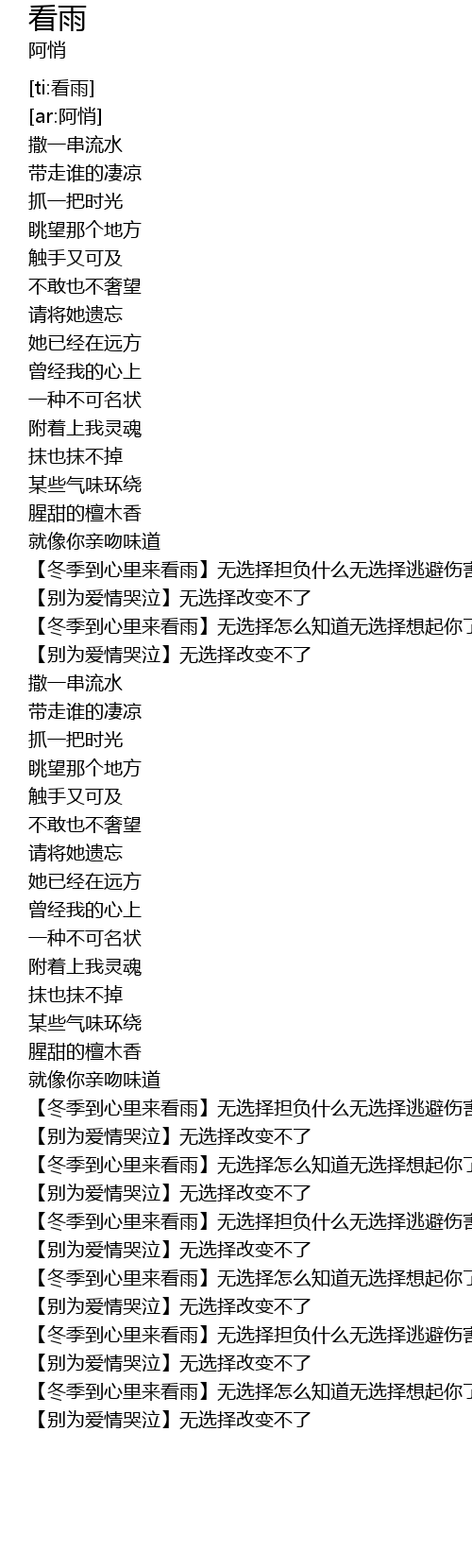 | [02:56.518] | 【冬季到心里来看雨】无选择怎么知道无选择想起你了 |