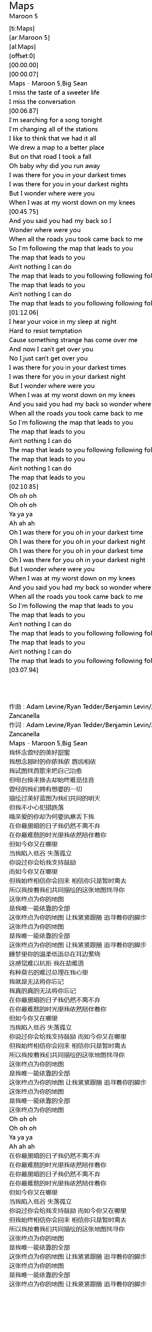 | [00:00.21] | Maps - Maroon 5,Big Sean |