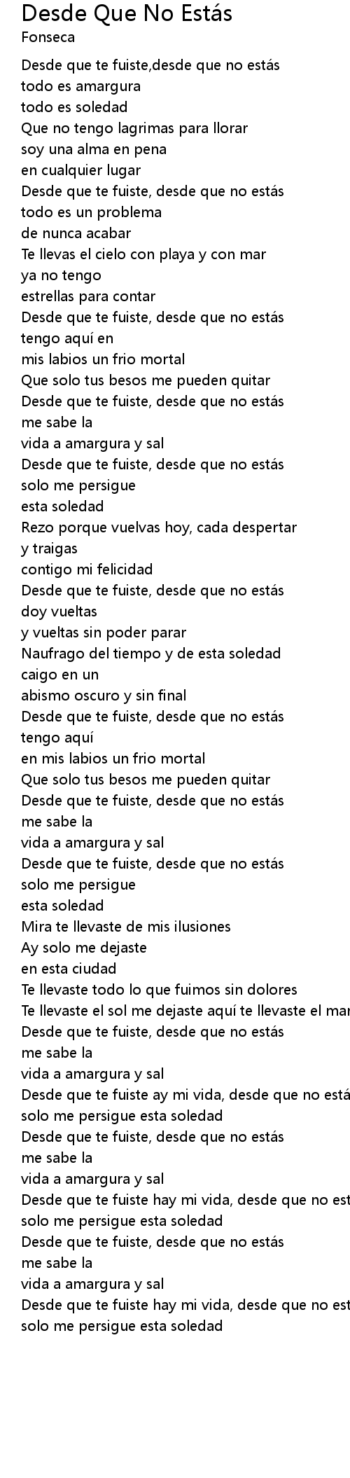 | [01:45.00] | Desde que te fuiste, desde que no está s |