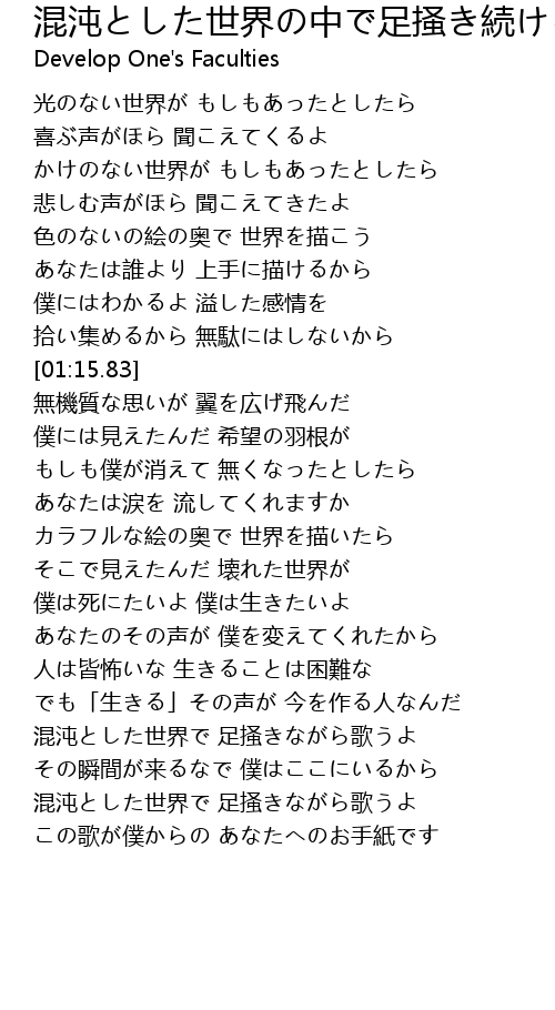 | [03:02.39] | 混沌とした世界で 足掻きながら歌うよ |