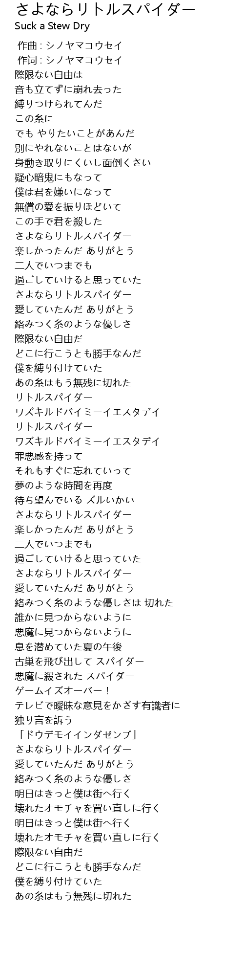 | [02:58.38] | さよならリトルスパイダー |