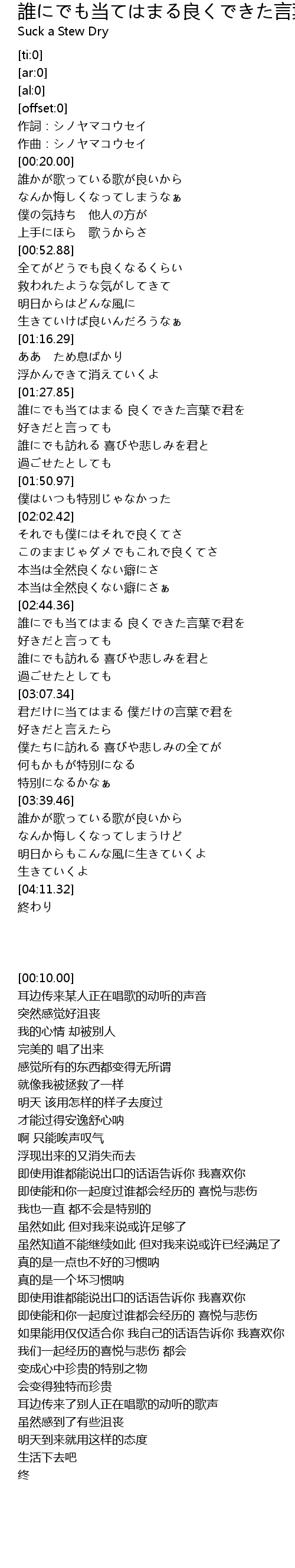 | [00:10.00] | 作詞:シノヤマコウセイ |