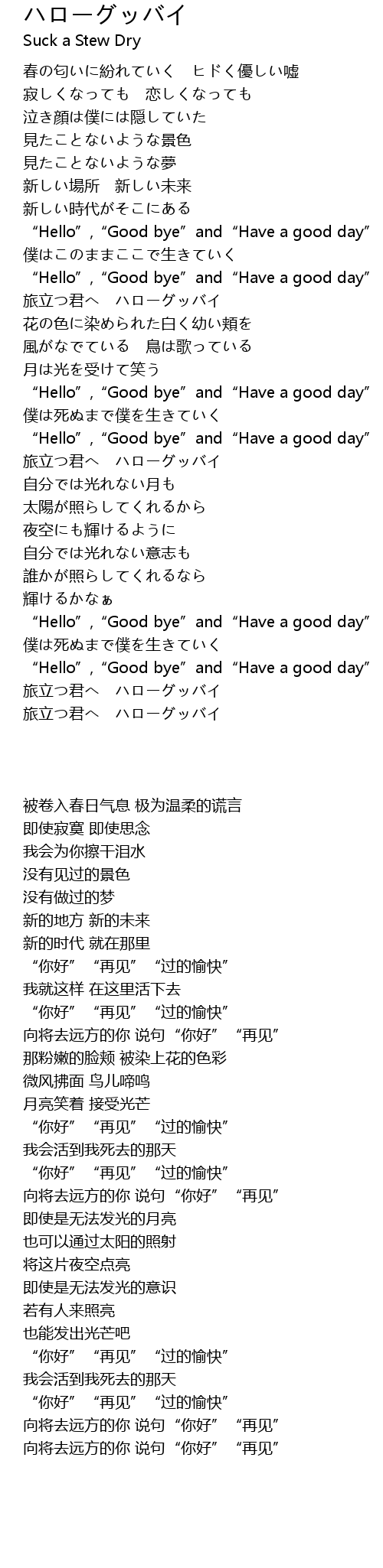 | [00:48.36] | " Hello"," Good bye" and" Have a good day" |
