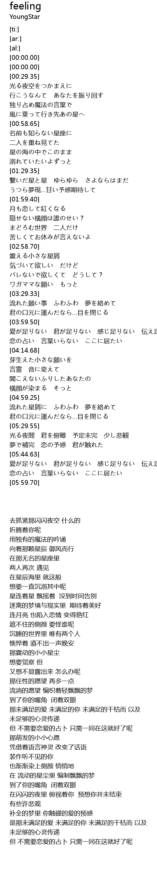 | [04:59.26] | 流れた星屑に ふわふわ 夢を絡めて |