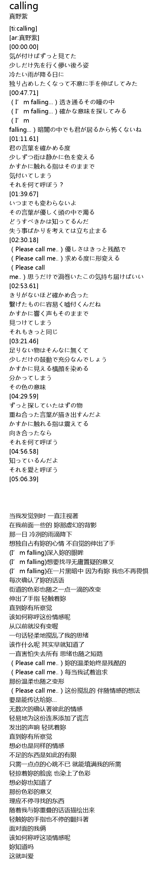 | [02:42.51] | Please call me.. sī wō juàn qì chí jiè |