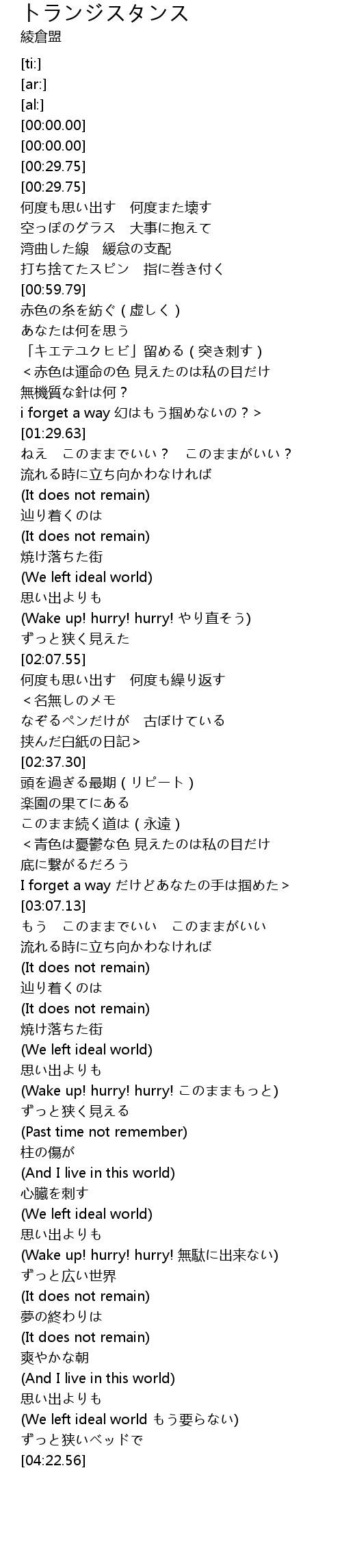 | [04:18.71] | (We left ideal world もう要らない) |