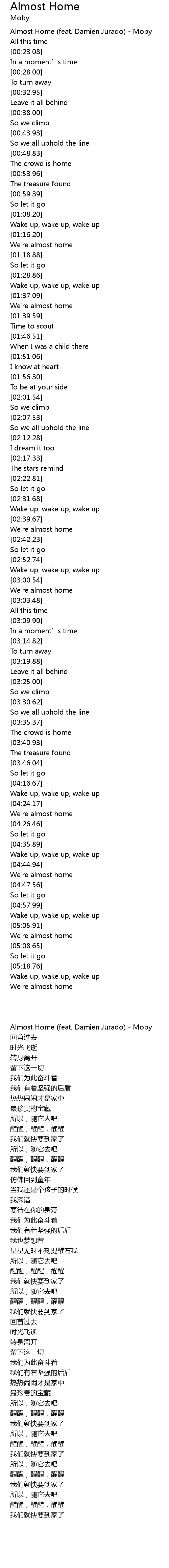 | [00:00.45] | Almost Home (feat. Damien Jurado) - Moby |