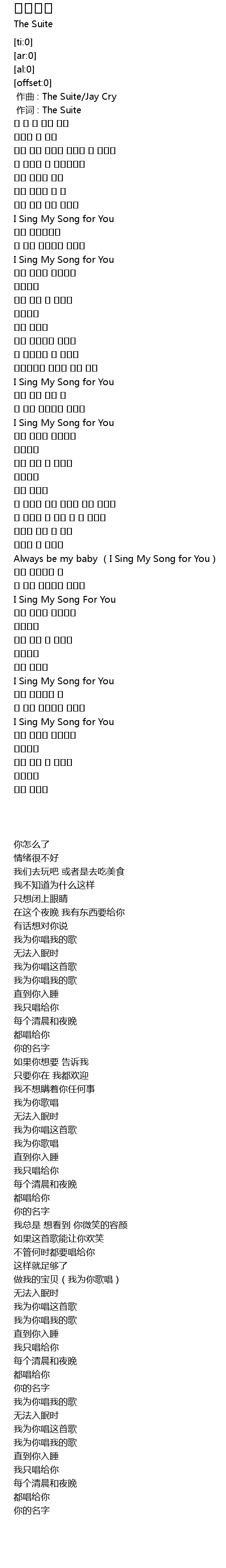 | [00:00.00] | zuò qǔ : The Suite Jay Cry |