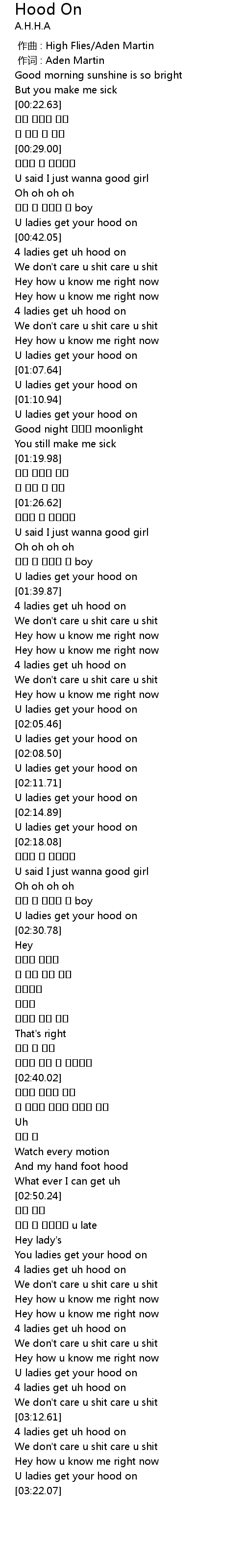 | [02:16.34] | U ladies get your hood on |