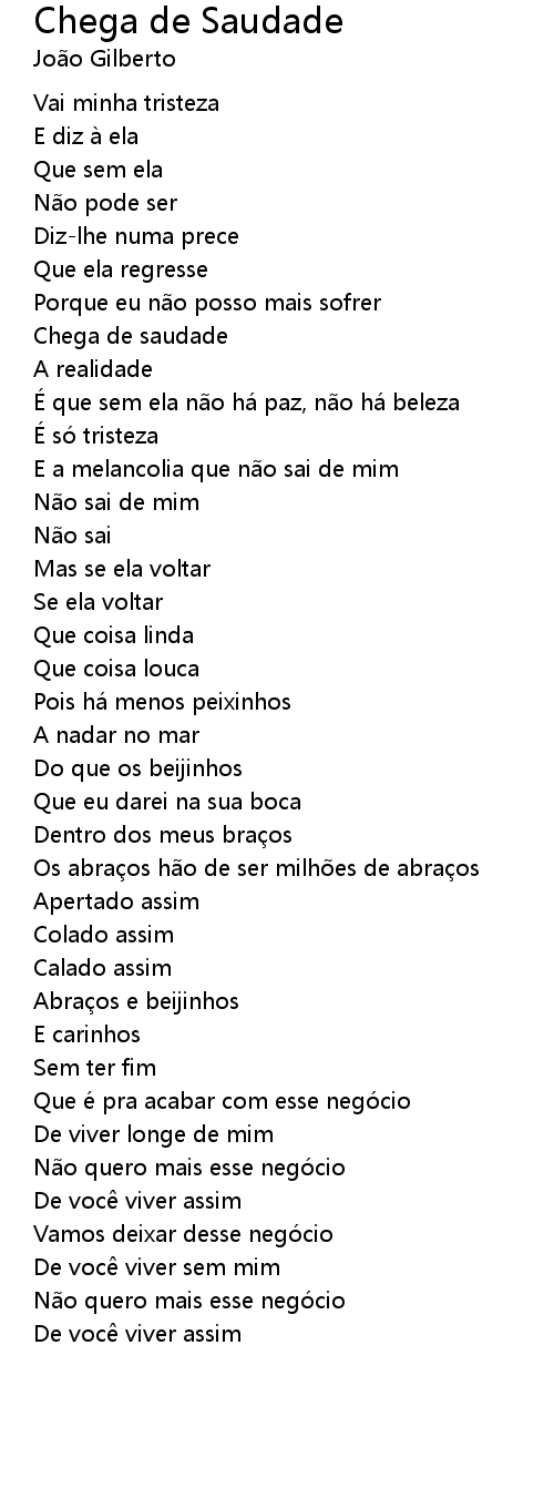 | Song | Chega de Saudade |