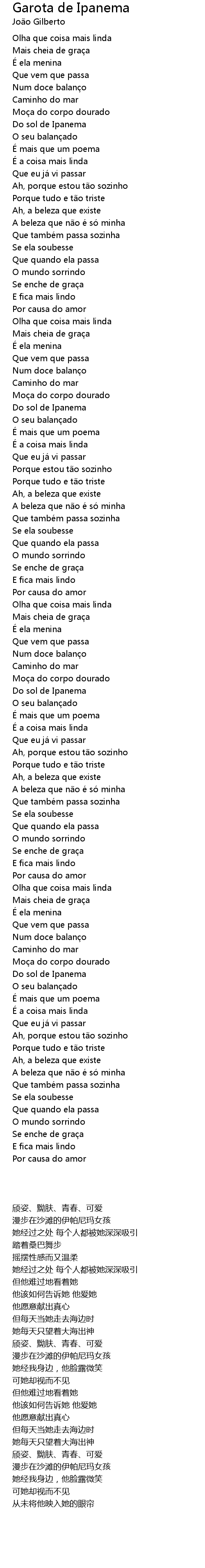 | [00:15.92] | Do sol de Ipanema |