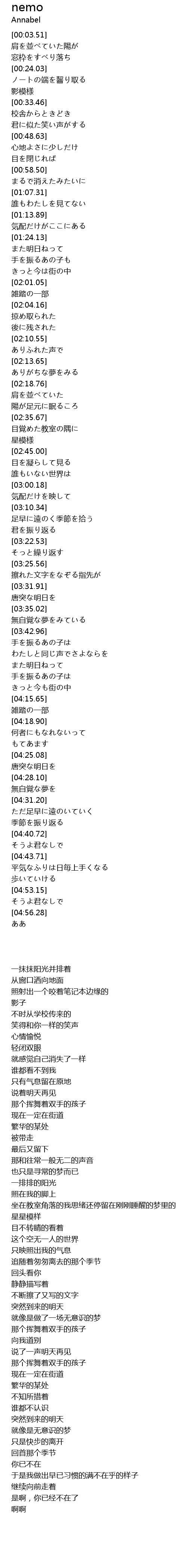 | [03:19.18] | 君を振り返る |