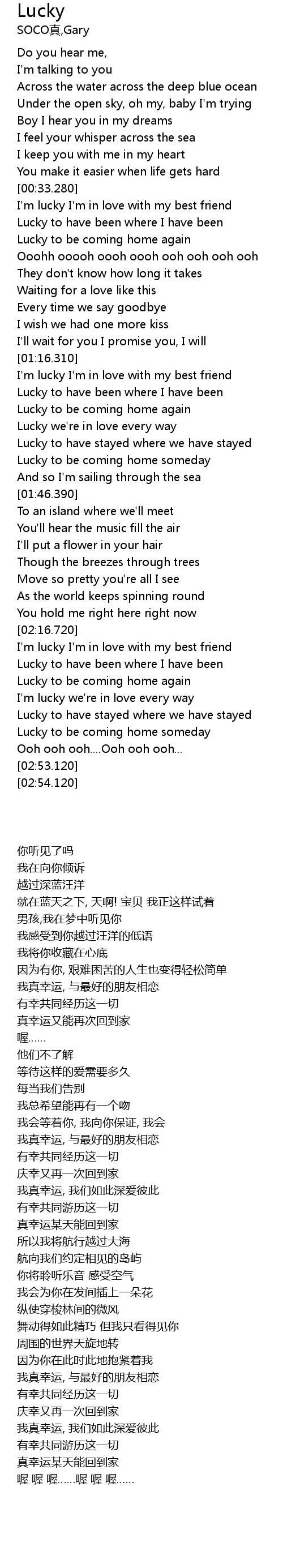 | [00:33.900] | I'm lucky I'm in love with my best friend |