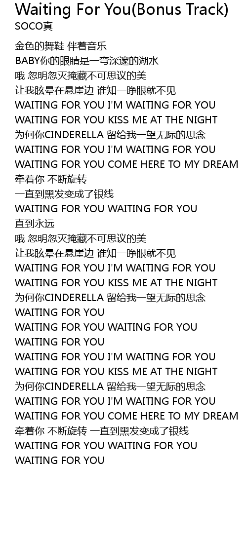 | [04:08.850] | WAITING FOR YOU I'M WAITING FOR YOU |