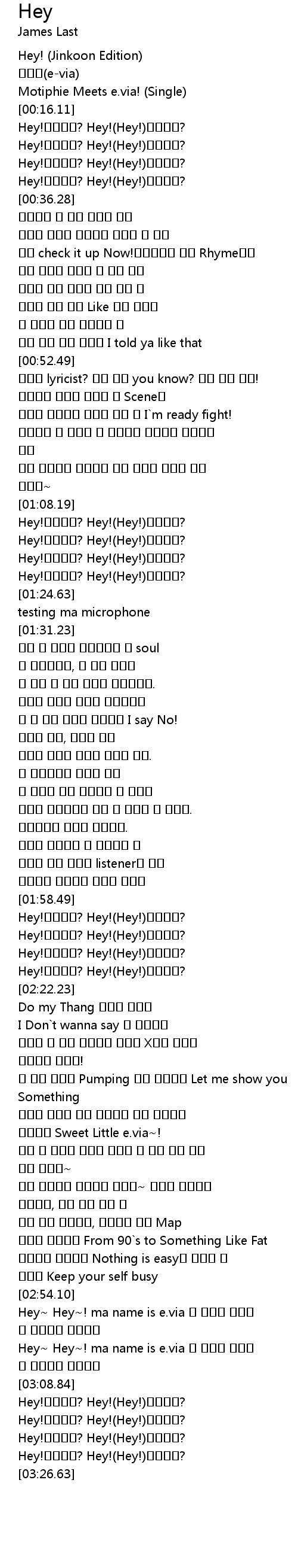 | [03:02.19] | Hey~ Hey~! ma name is e.via 난 랩하는 입이야 |