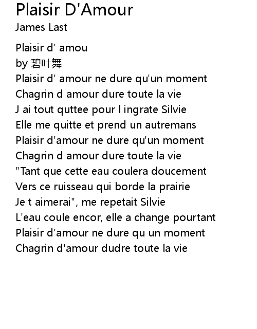 | [03:14.72] | Plaisir d' amour ne dure qu un moment |
