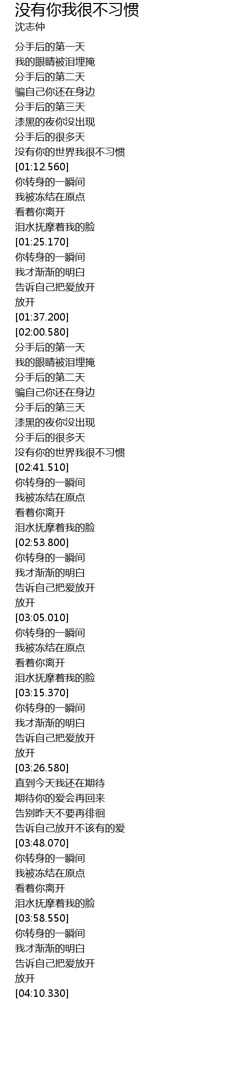 | [01:05.630] | 没有你的世界我很不习惯 |