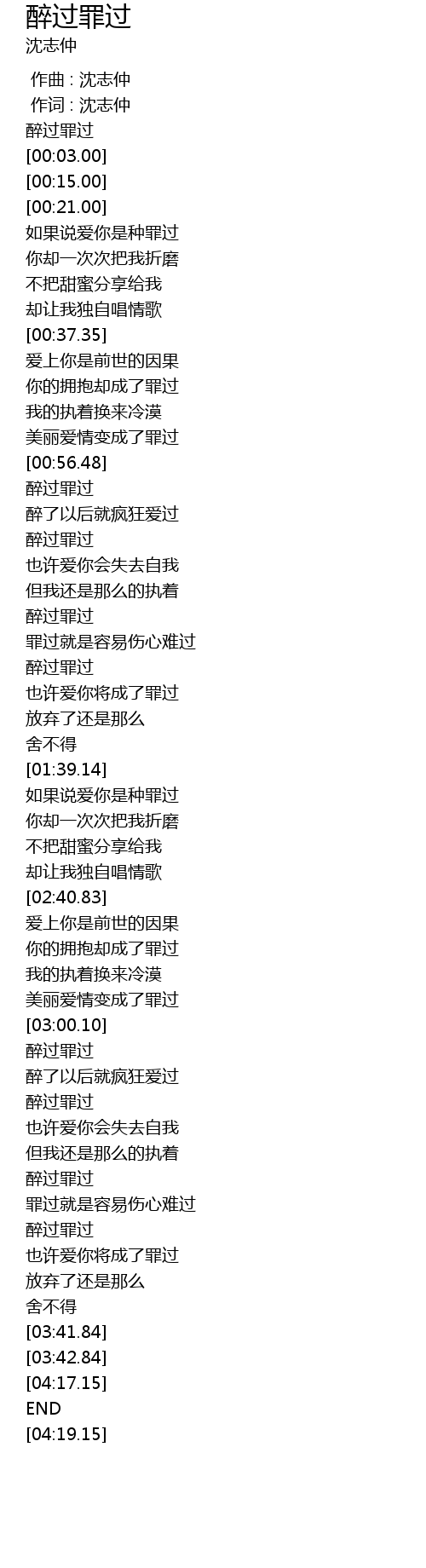 | [01:19.39] | 罪过就是容易伤心难过 |