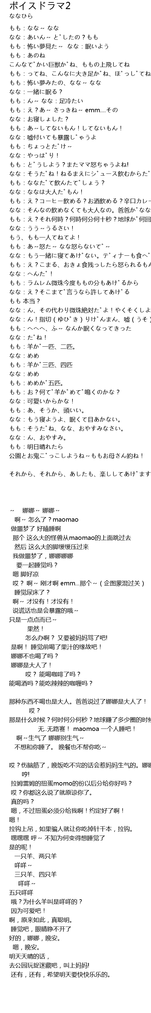 | [01:23.947] | なな:そんなの飲めなくても大人なの。爸爸がななは大人だねって言ったもん |