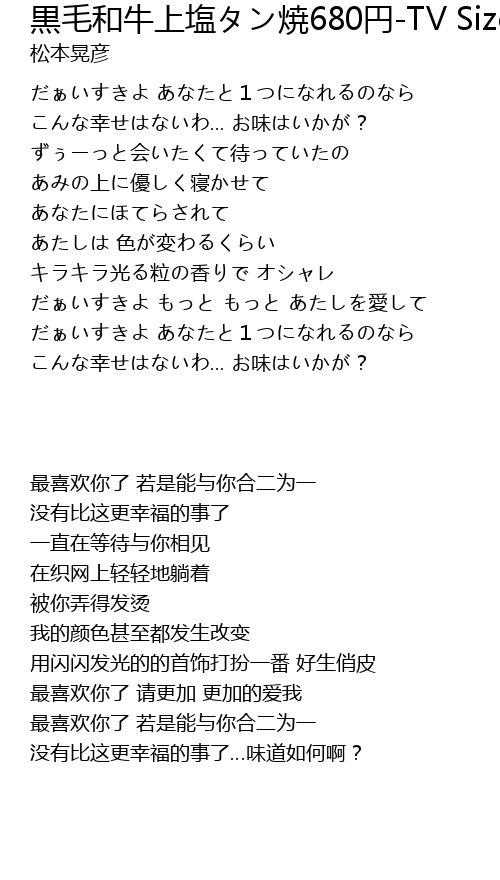 | Song | 黒毛和牛上塩タン焼680円-TV Size- |