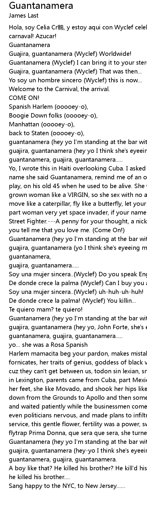 | Guantanamera Wyclef I can bring it to your stereo.. | |