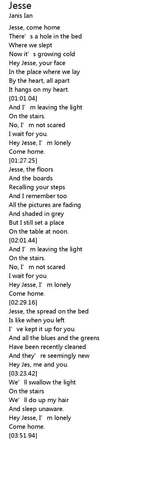 | [01:19.47] | Hey Jesse, I' m lonely |