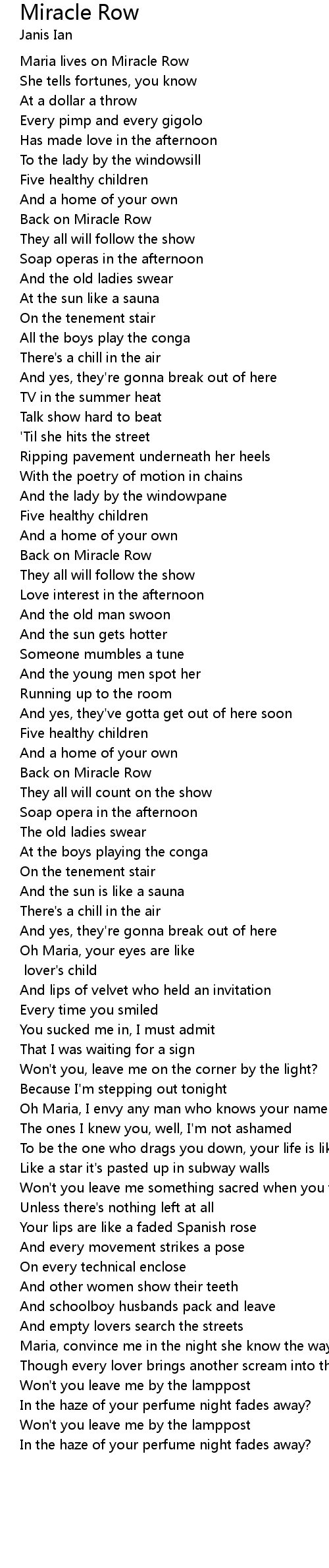 Miracle Row Lyrics