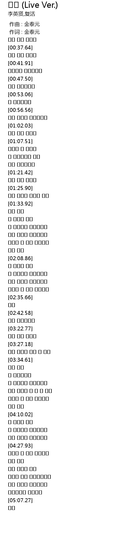 | [00:01.00] | 作词 : 金泰元 |
