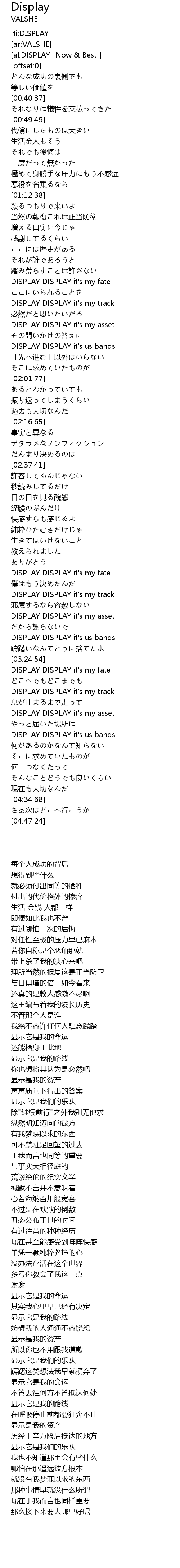 | [03:56.17] | DISPLAY DISPLAY it' s my fate |
