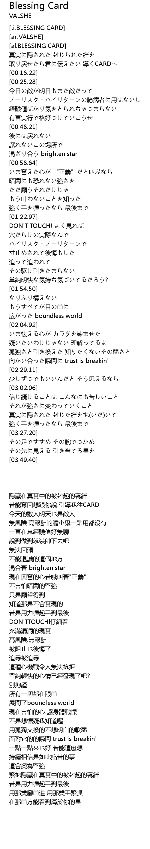| [00:07.31] | 取り戻せたら君に伝えたい 導くCARDへ |