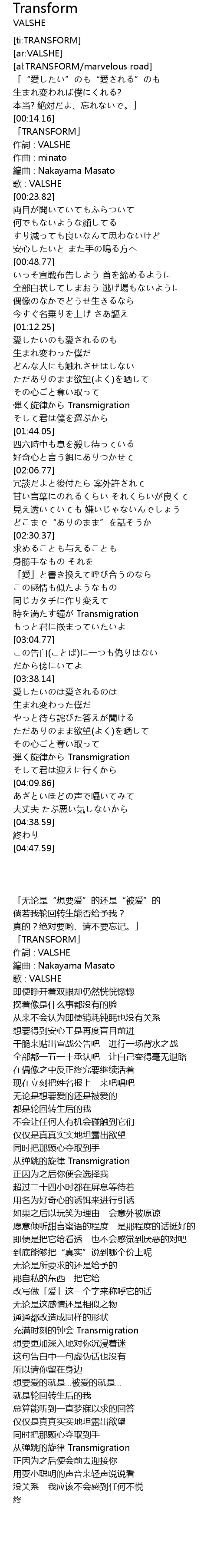 | [02:49.65] | 時を満たす鐘が Transmigration |