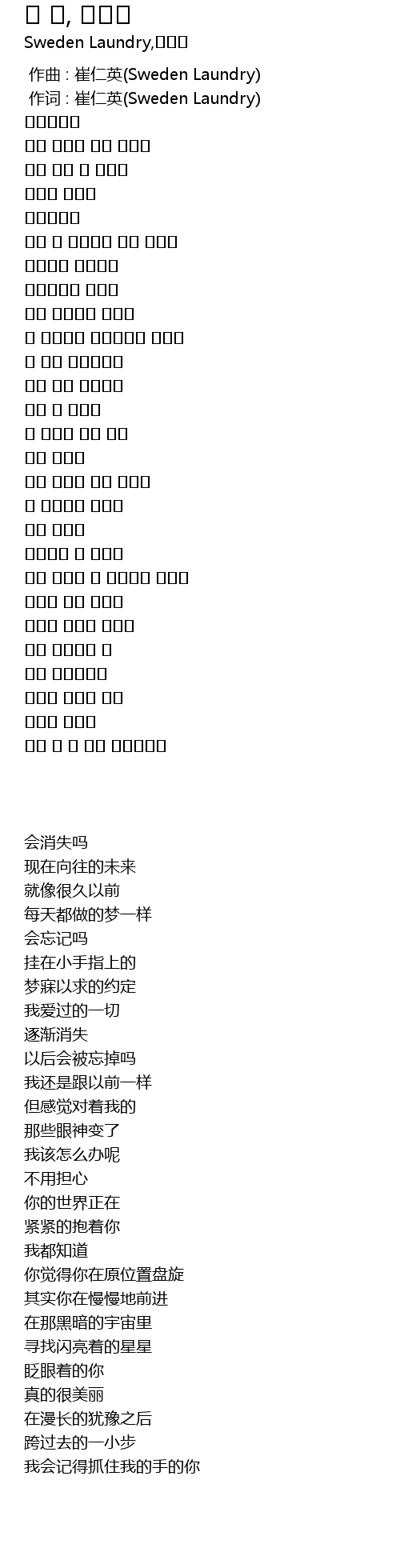 | [00:01.00] | 作词 : 崔仁英(Sweden Laundry) |