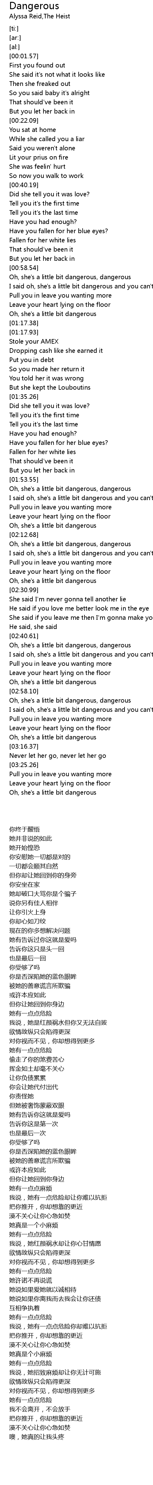 | [01:54.81] | Oh, she's a little bit dangerous, dangerous |