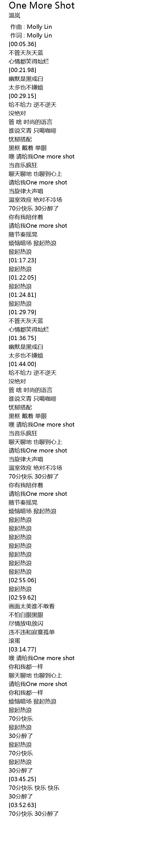 | [00:00.00] | 作曲 : Molly Lin |