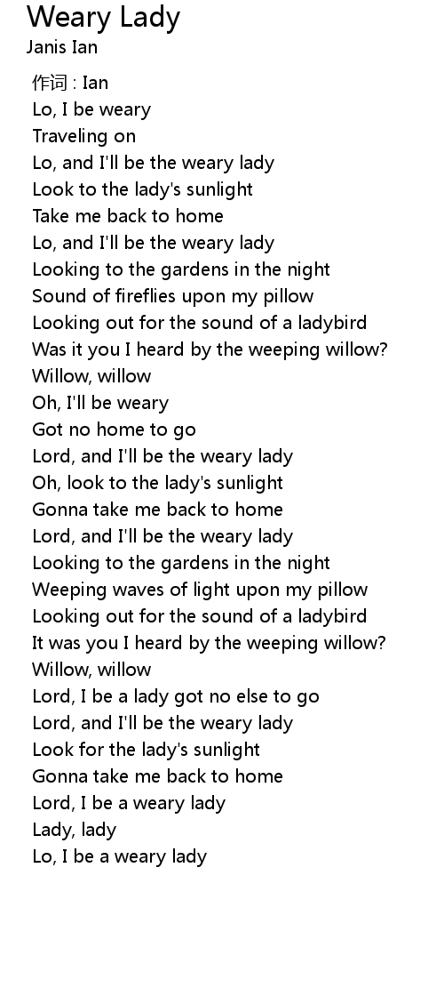 | Song | Weary Lady |
