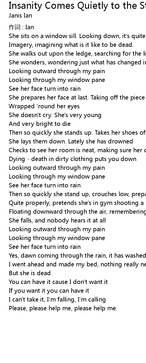 | Song | Insanity Comes Quietly to the Structured Mind |