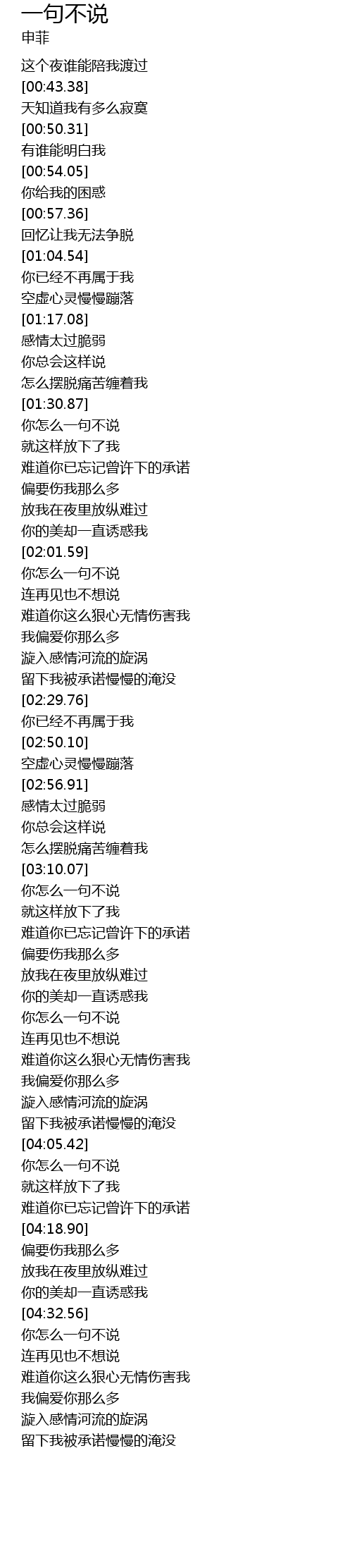 | [04:05.98] | nǐ zěn me yī jù bù shuō |