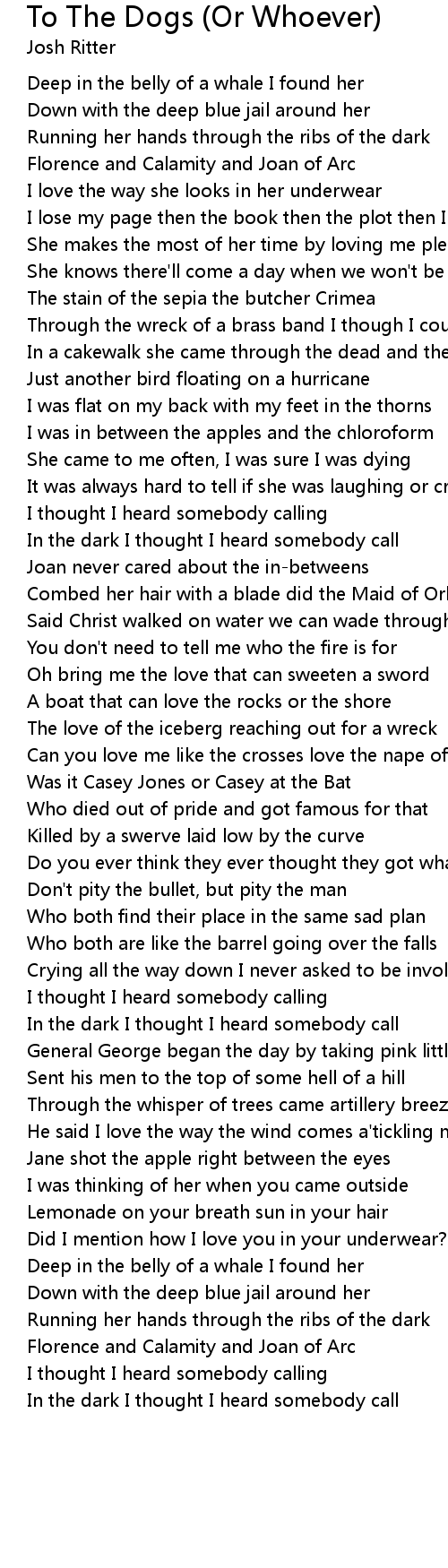 In the dark I thought I heard somebody call |