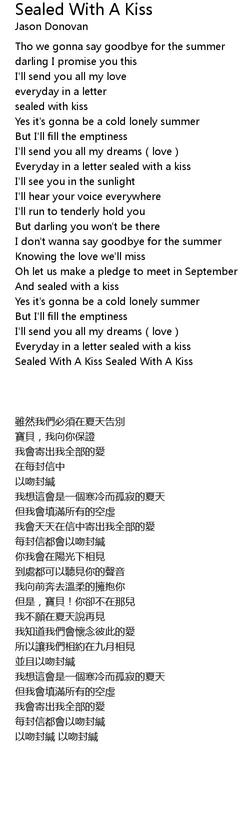 | [02:17.67] | Sealed With A Kiss Sealed With A Kiss |